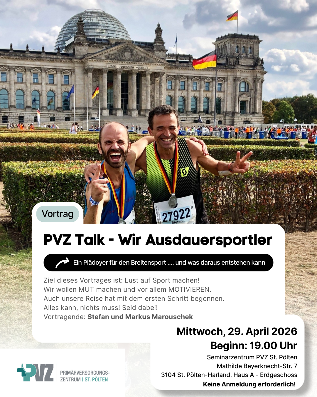 Am 29.04.2026 um 19:00 Uhr erwartet euch im Seminarzentrum des PVZ St. Pölten ein neuer und spannender Vortrag, der motivieren und Mut machen soll. Ein inspirierender Abend, der einfach Lust auf Bewegung vermittelt.